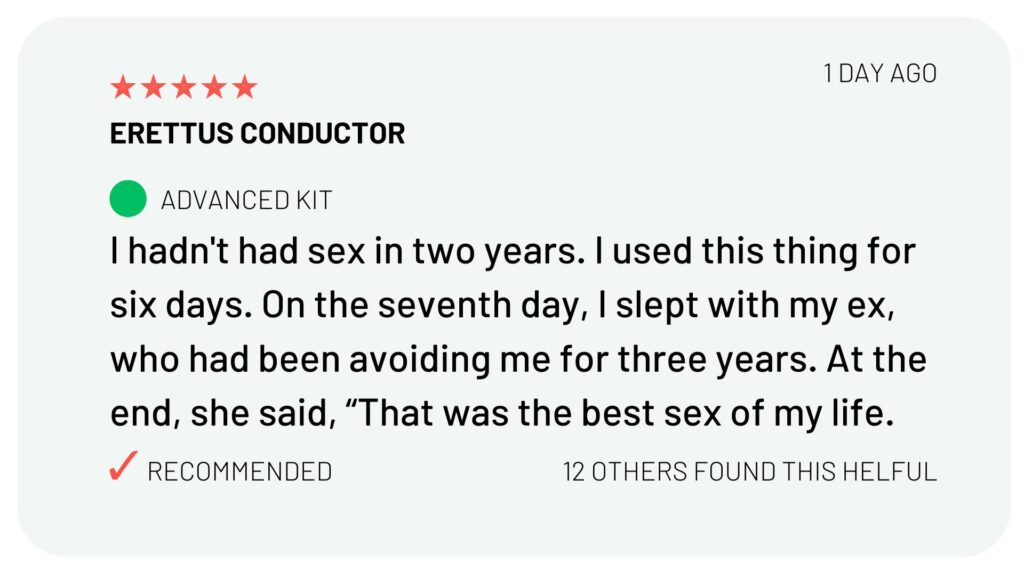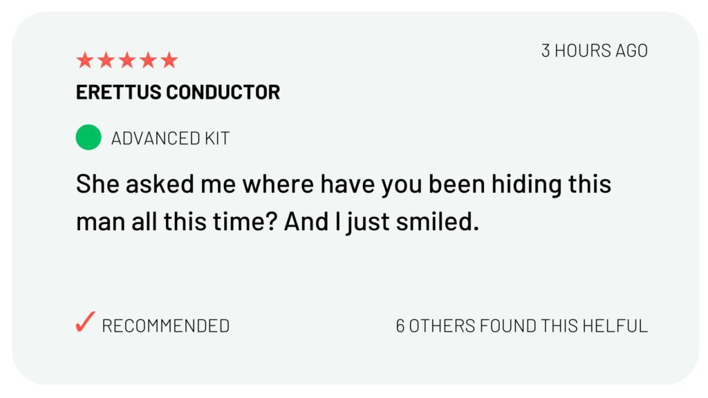 But with the Erettus Conductor™, it only takes 3 seconds a day — worn silently, even while going about your daily routine… or during sex.